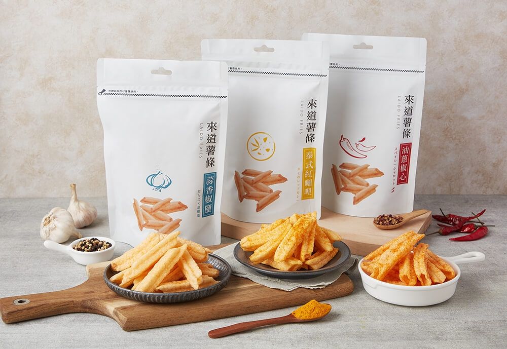 由來道獨家的拌麵醬汁,研發成粉末,撒在蓬鬆、口感酥脆的薯條餅乾上混合而成,為求入味,吳先生與大廚多次研議、嘗試。「來道薯條」在如此嚴謹繁瑣流程下產出,只為帶給顧客們全新的味蕾享受。